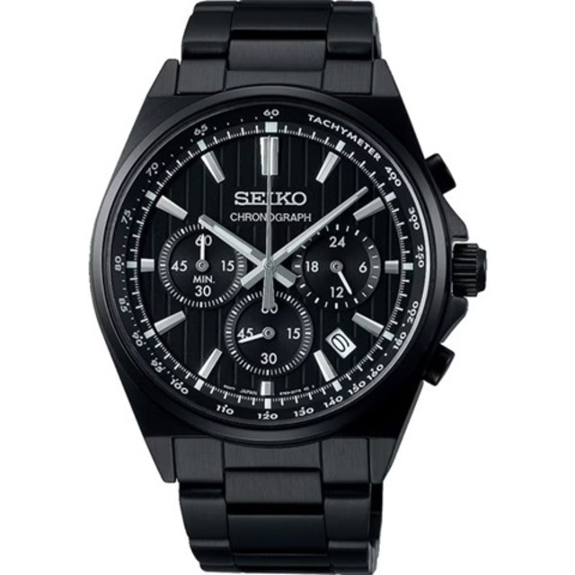 SEIKO セイコーセレクション SBTR055 クオーツ クロノグラフ ブラックダイヤル ブレスレット メンズ腕時計