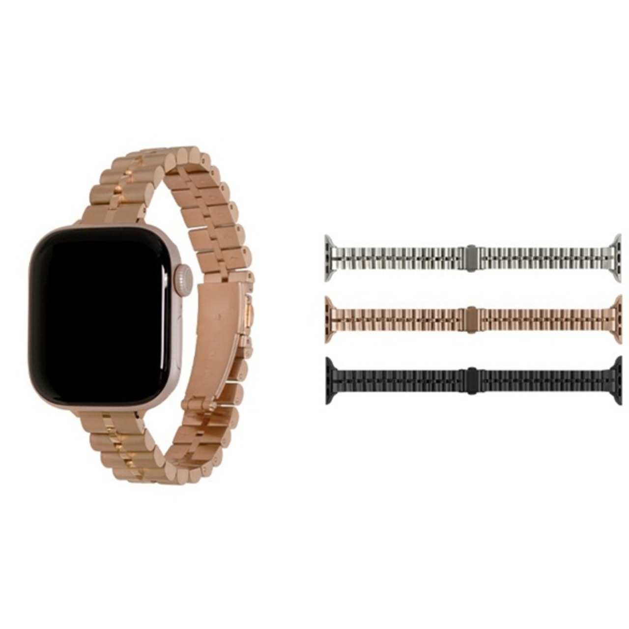 ツヤの異なるステンレスを組み合わせた華やかさなベルトです。細身のデザインで手元はすっきりと見せながら、厚みのあるしっかりした作りで高級感あふれる印象を与えてくれます。スムーズに着用できるバックルを採用。
