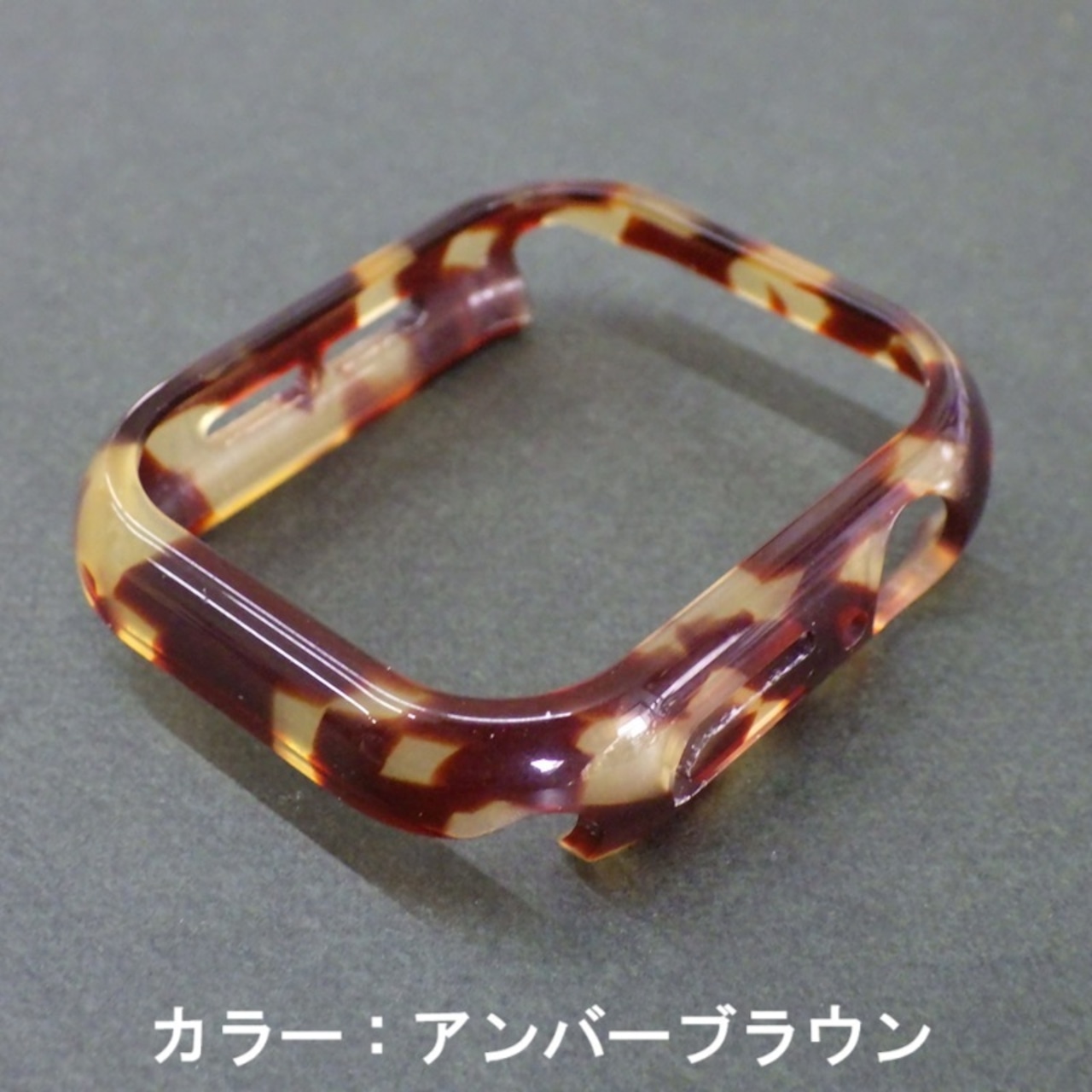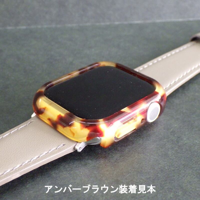 軽くツヤ感のあるレジン素材のApple Watch用のハードカバーです。ディスプレイにガラス面のないフレームタイプなので操作性が良く、また両サイドまでしっかり保護できるフルカバー仕様です。大理石やべっこうのような風合いが楽しめ、ベルト選びの幅が広がります。