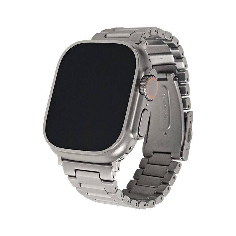アップルウォッチUltra,Ultra2にも対応したチタン製のバンドになります。通常、チタンは傷が付きやすい素材になりますが独自の超硬質メッキ加工(IPH加工)を施すことによって、表面硬度をHv1200まで向上させ(通常チタンでは、Hv100程度)、チタン製のバンドでも傷がつきにくい仕上がりになっております。チタン製なので軽量性にも優れてます。