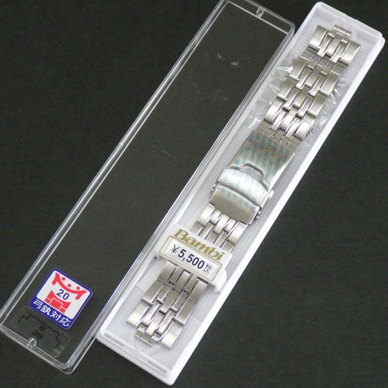 BAMBI バンビ 時計ベルト ステンレスバンド 8mm(18mm 20mm 対応 弓カン付属) シルバー 部分鏡面 プッシュ式ダブルロックバックル