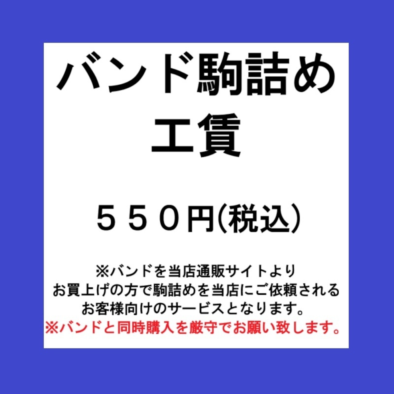 ※当店店頭でバンドを購入いただいた際は、工賃無料で駒詰めをしております。他店購入品を当店店頭に持ち込まれた場合は税込1,100円にて承ります。