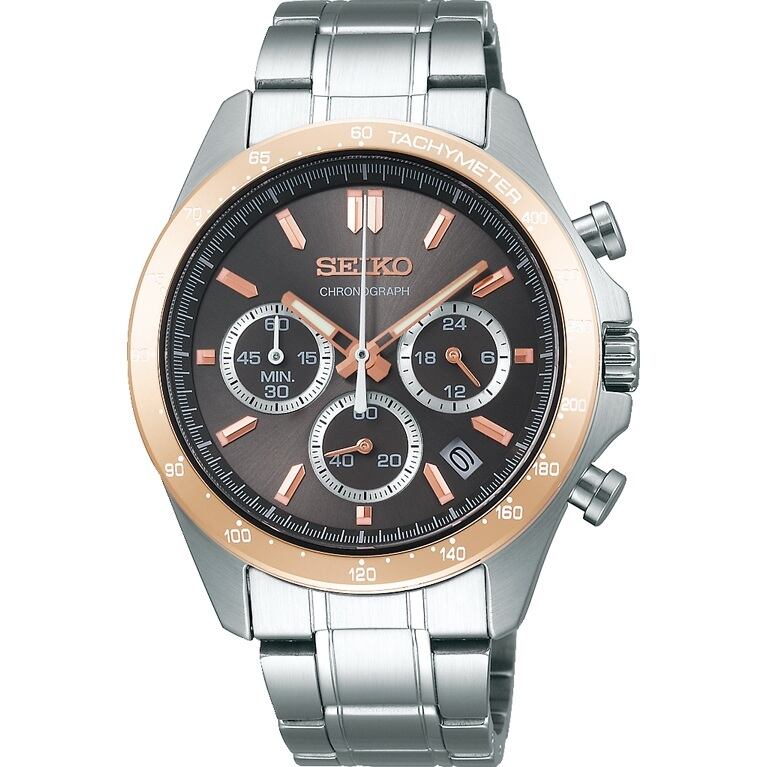 大特価★SEIKO セイコー SBTR026 クオーツクロノグラフ ピンクゴールドベゼル ブラウン文字盤 10気圧防水 メンズ腕時計