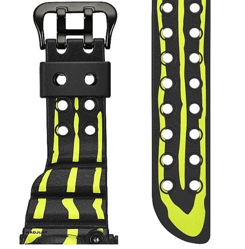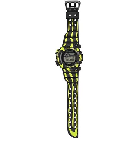 ブラックベースに大胆な蛍光グリーンの縦縞模様を施し、ミスジヤドクガエルの強力な毒性を象徴する鮮やかでタフなデザインに仕上げました。でこぼこの皮膚の質感はバンドとベゼルへのスプレー塗装で再現。さらに、ケース裏のカエルのキャラクター刻印もミスジヤドクガエルの縦縞模様を纏った特別仕様に仕上げています。タフソーラーを備え、蛍光灯のわずかな光でも発電し強負荷のかかる各種機能を安定駆動。