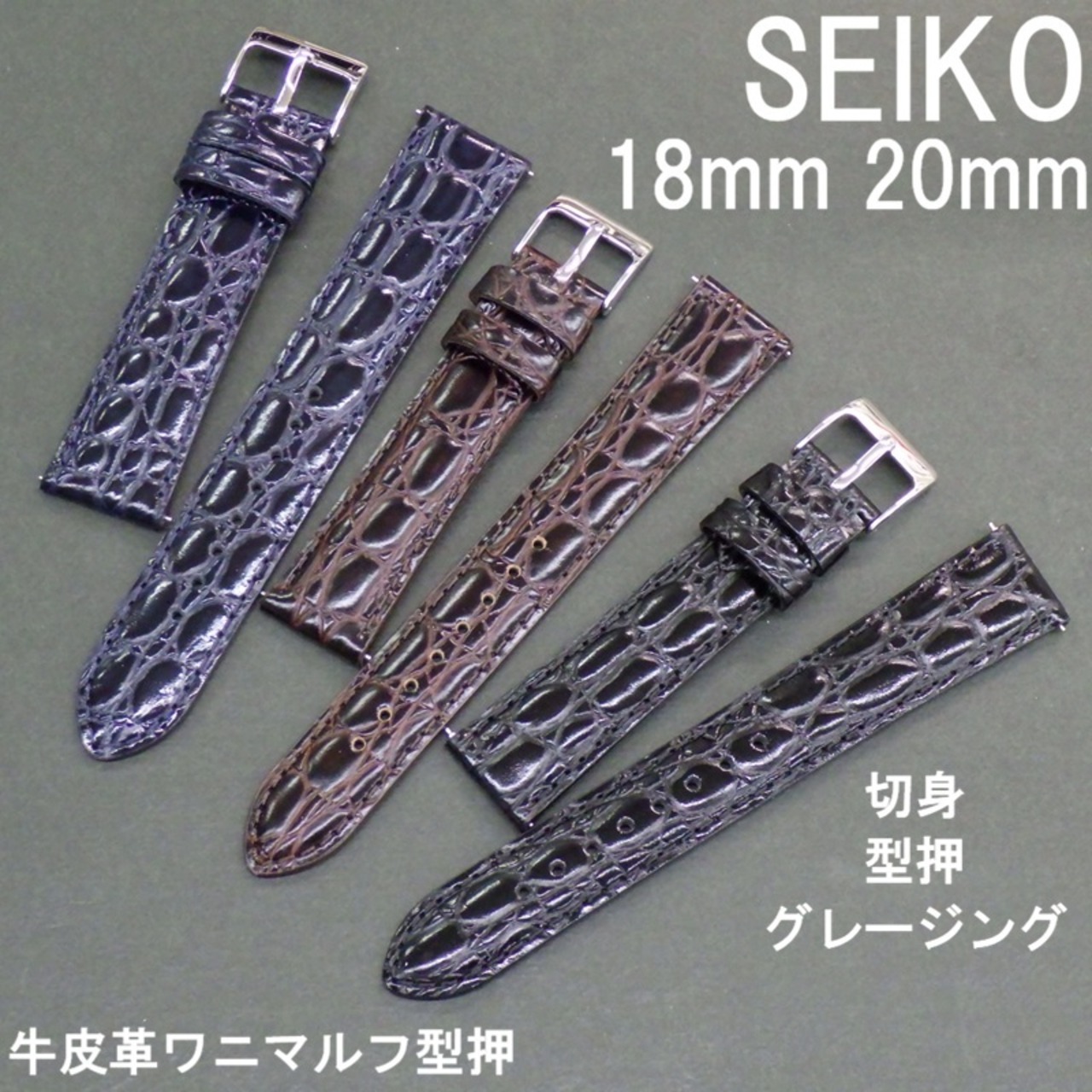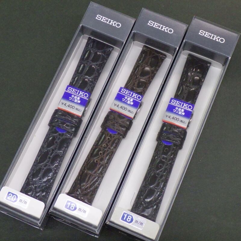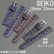 SEIKO セイコー 時計ベルト 牛革バンド 18mm 20mm 牛皮革ワニマルフ型押 切身/薄型/グレージング