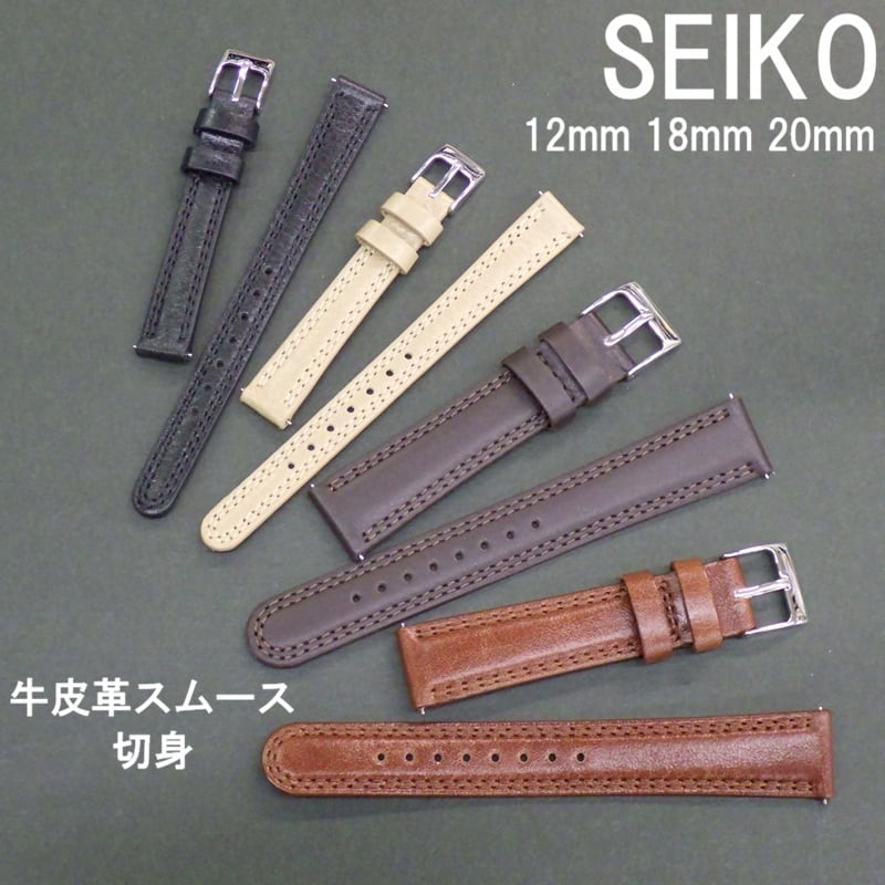 SEIKO セイコー 時計ベルト 牛革バンド 12mm 18mm 20mm 牛皮革スムース 切身