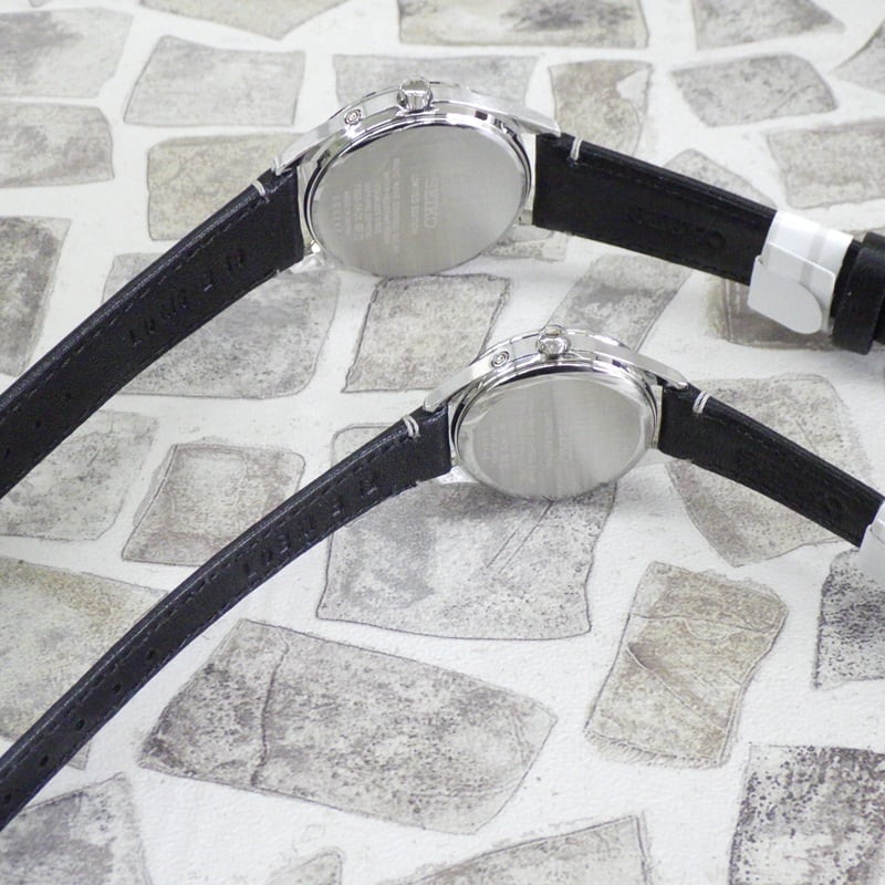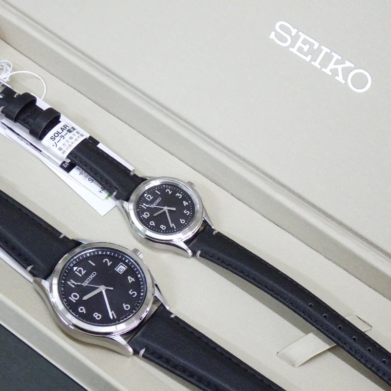限定品★SEIKO セイコーセレクション ソーラー電波時計 牛革バンド アラビア数字 黒文字盤 サファイアガラス 10気圧防水 ベアウォッチ ペア腕時計