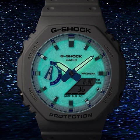 1983年の発売以来、飽くなき強さを求めて進化を続けるタフネスウオッチG-SHOCKから、人間の潜在能力を暗闇で光る蓄光パーツで表現した、HIDDEN GLOW SERIESです。