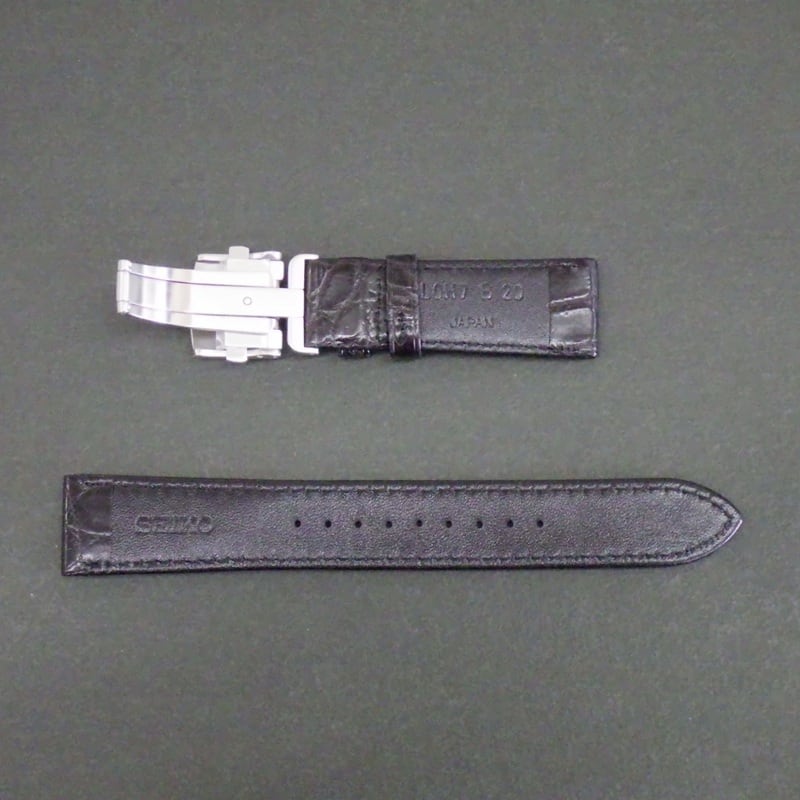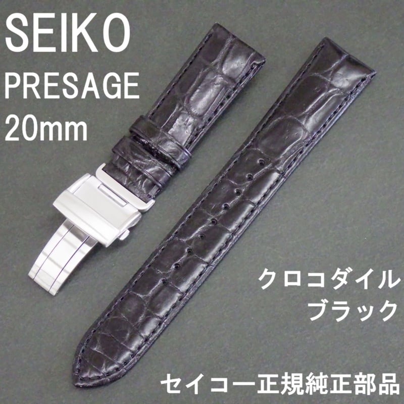 SEIKO セイコー 時計ベルト 20mm ワニ革 クロコダイルバンド L0H7011J9 Dバックル付き PRESAGE プレザージュ純正 ブラック