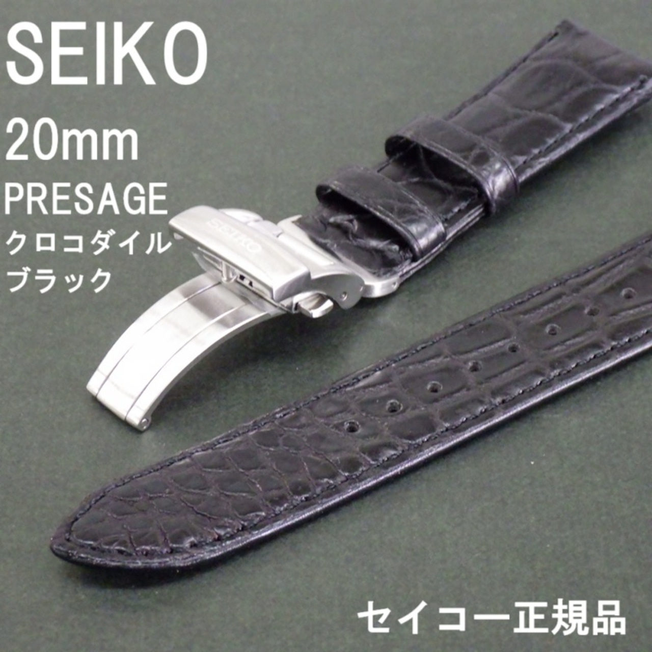 SEIKO セイコー 時計ベルト 20mm ワニ革 クロコダイルバンド L0H7011J9 Dバックル付き PRESAGE プレザージュ純正 ブラック | 栗田時計店(1966年創業の正規時計販売店)