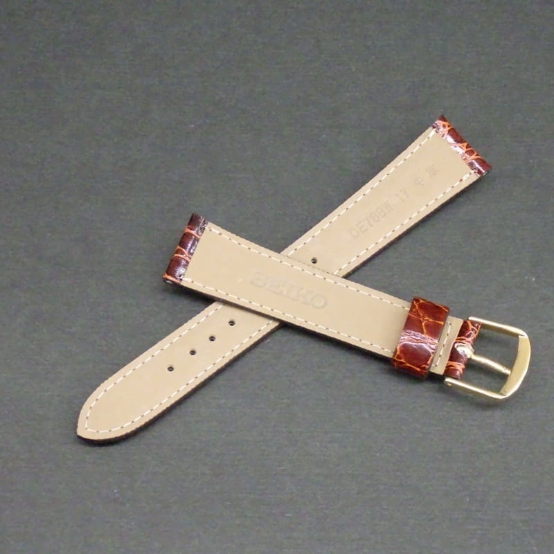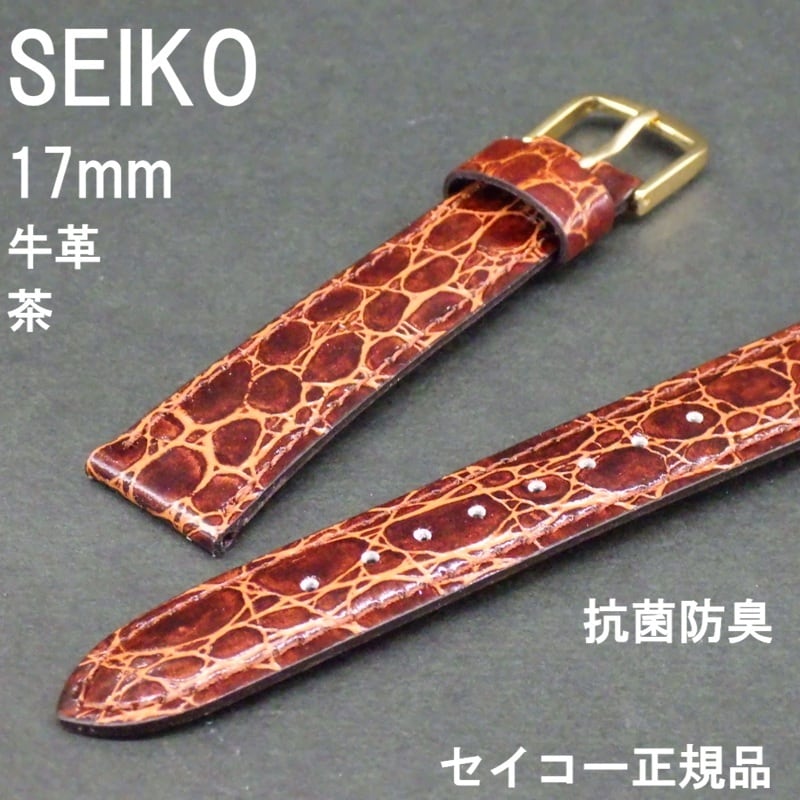SEIKO セイコー 時計ベルト 牛革バンド 17mm 茶 DE78 抗菌防臭 撥水 市販 レザー バネ棒付き
