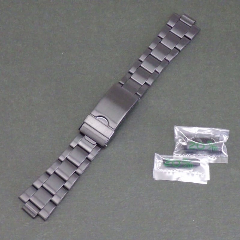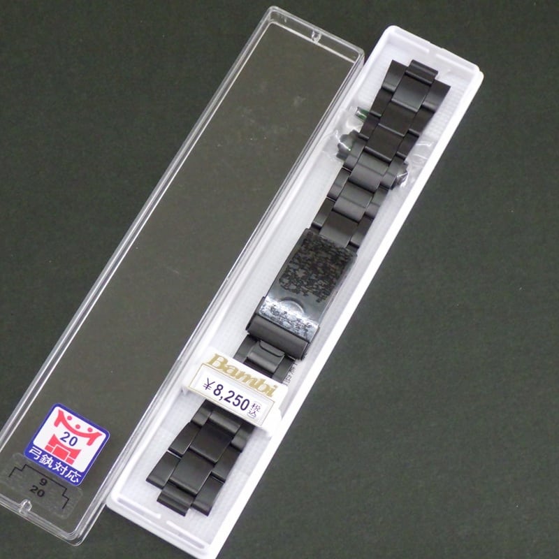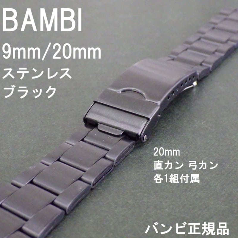 BAMBI バンビ 時計ベルト ステンレスバンド 9mm (20mm対応 直カン 弓カン 付属) ブラック