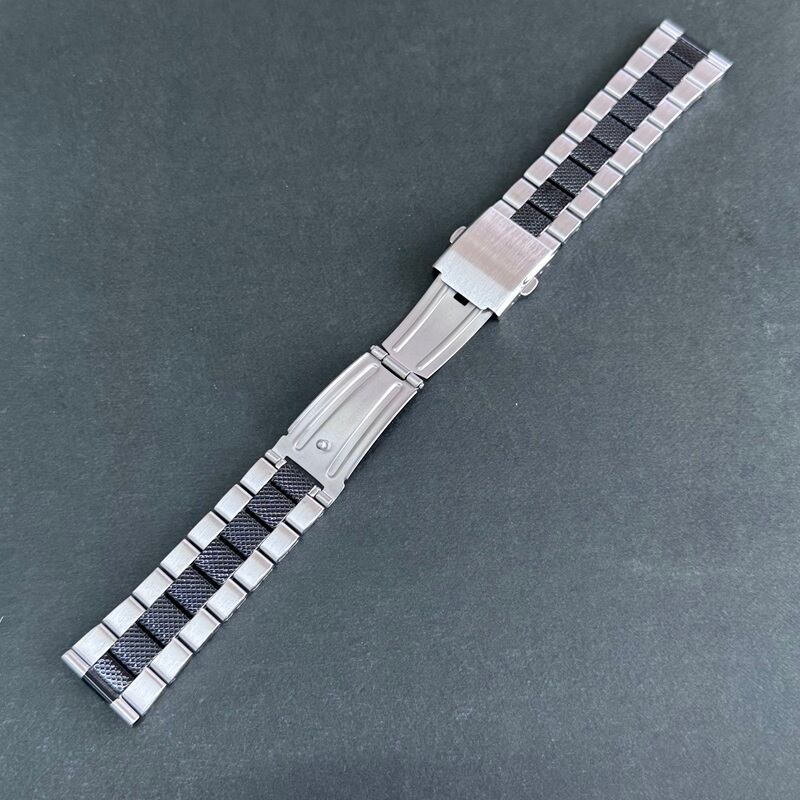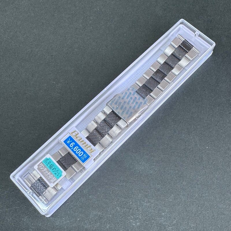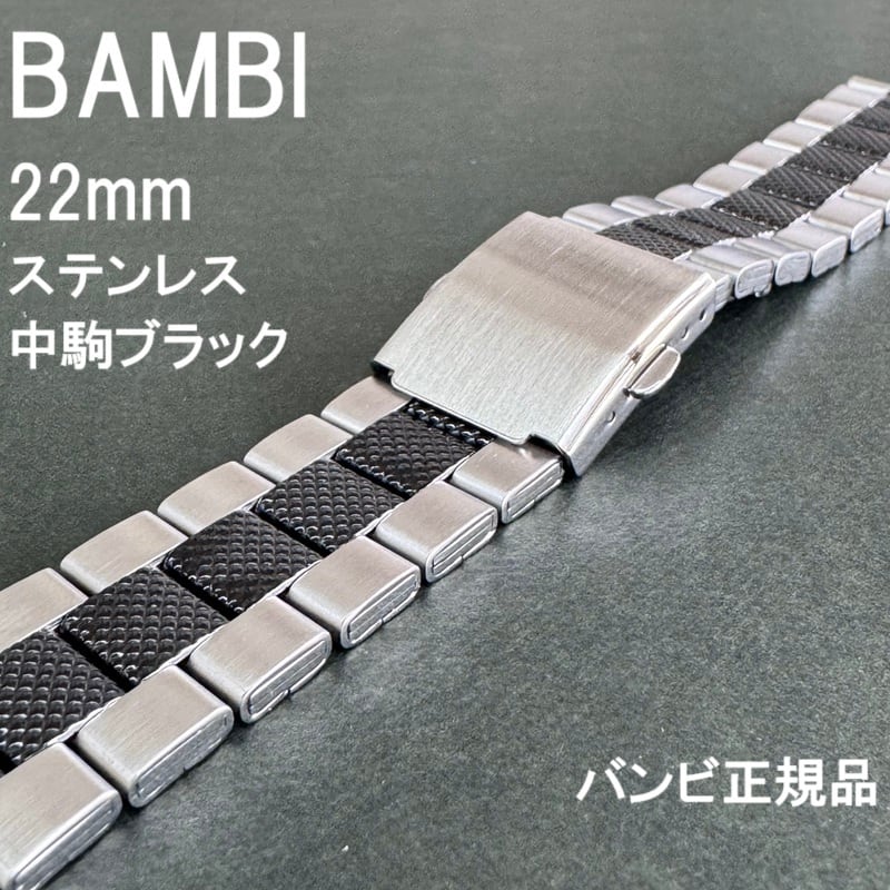 BAMBI バンビ 時計ベルト ステンレスバンド 22mm シルバー 中駒ブラック ワンタッチ中留