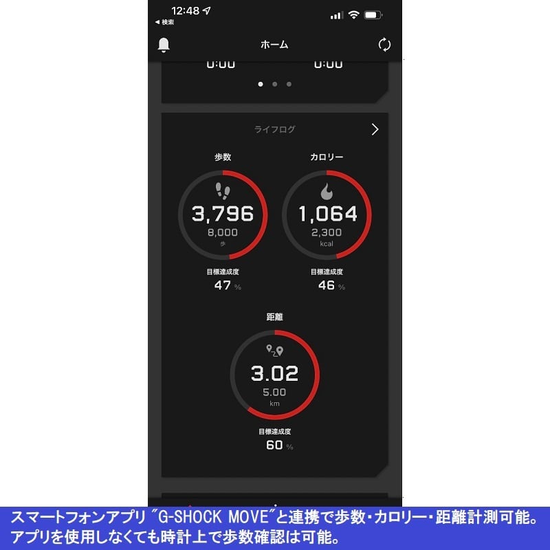 ライフログデータ:<デイリーデータ表示>歩数、<月間データ表示>走行距離