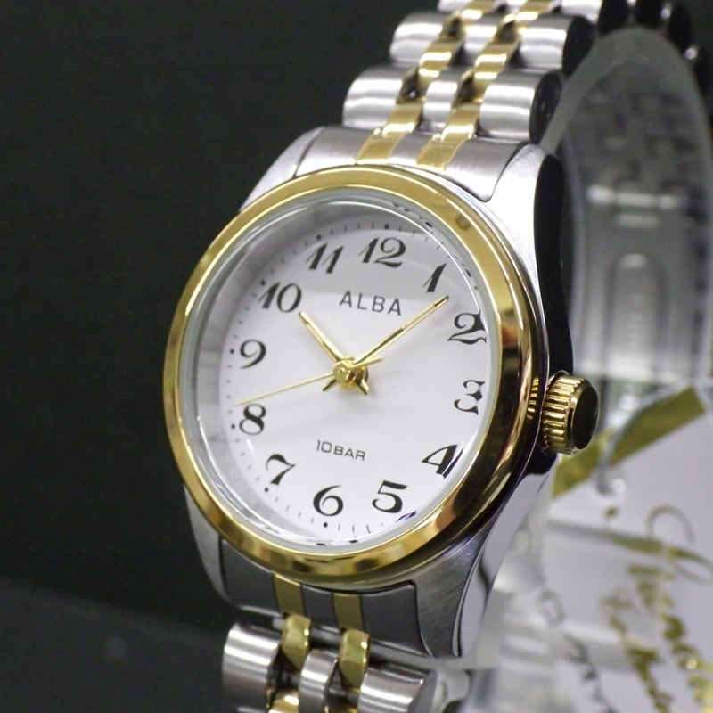 SEIKO セイコー ALBA アルバ AEGK427 アラビア数字 金色コンビベルト 10気圧防水 レディース腕時計
