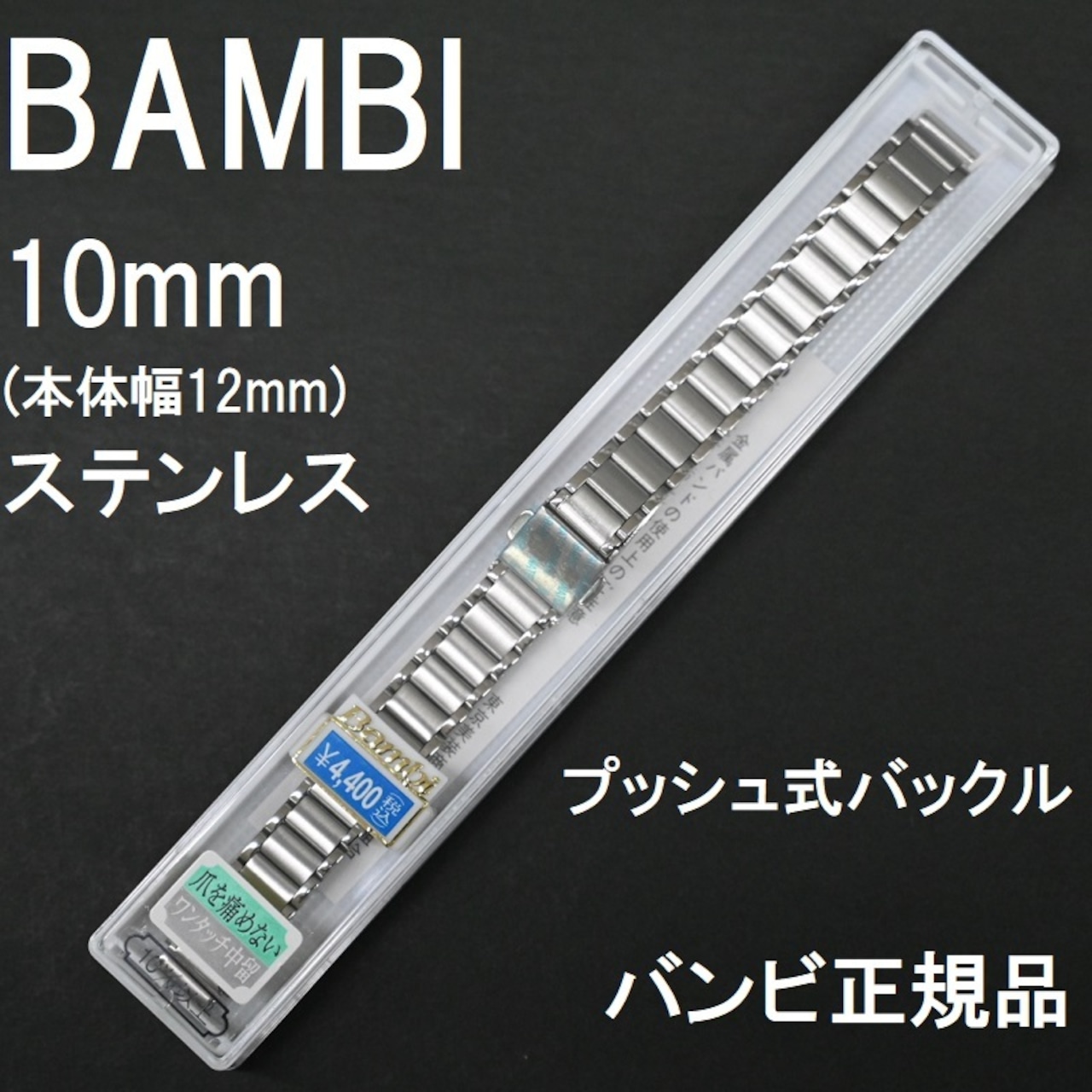 BAMBI 時計ベルト ステンレスバンド 10mm(本体幅12mm) プッシュ式バックル バンビ正規品