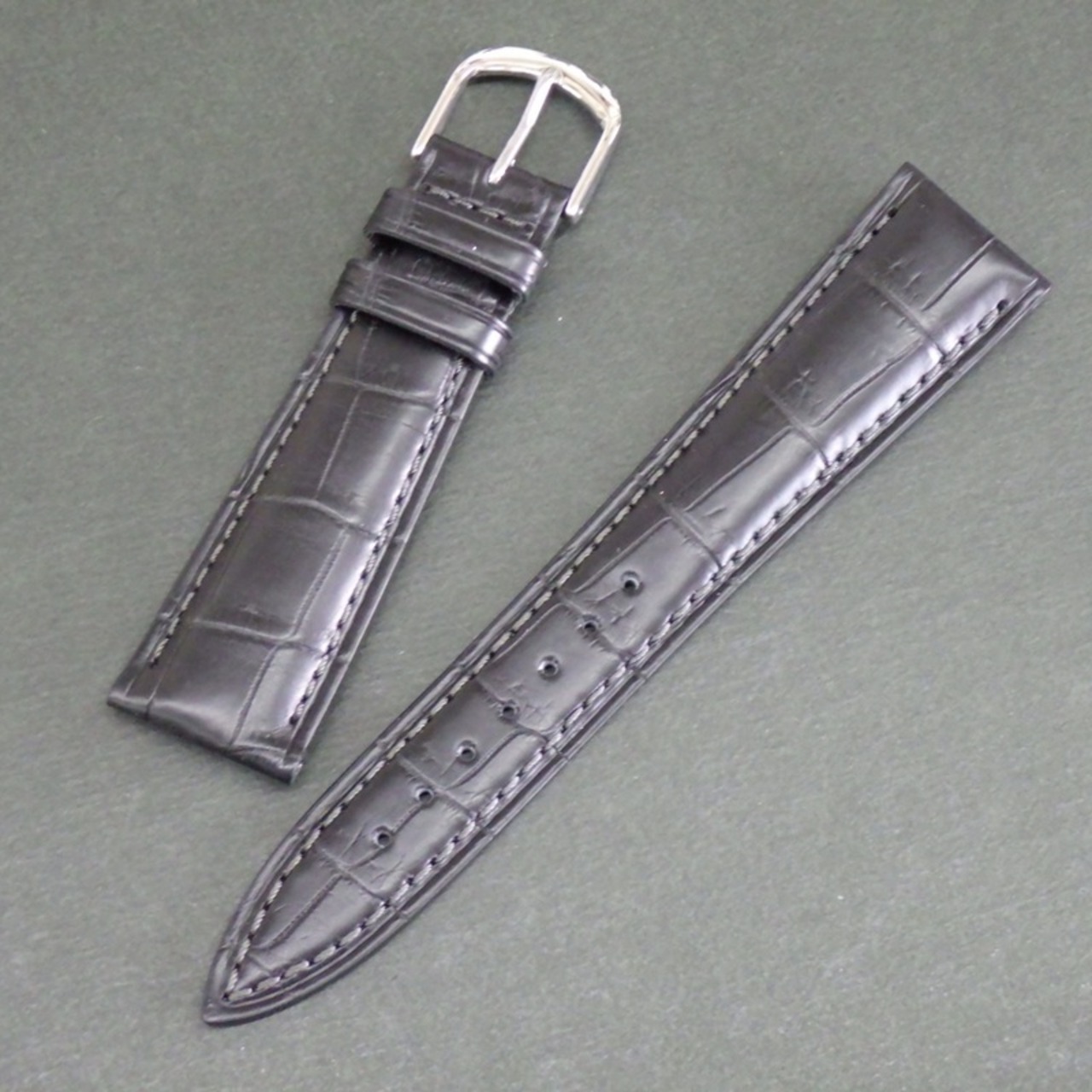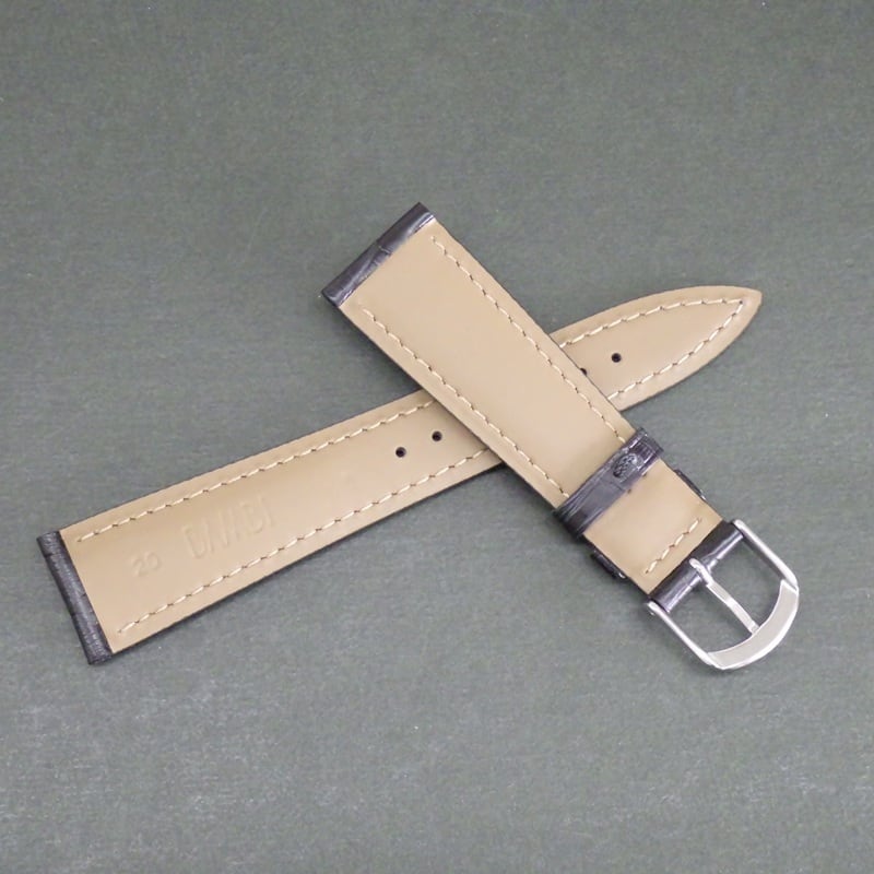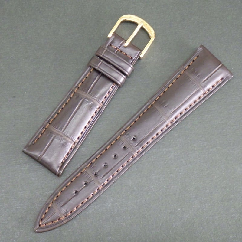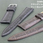 BAMBI 時計ベルト ワニ革バンド 17mm 18mm 19mm 20mm 竹符 マット仕上げ(ツヤ消し) 黒 チョコ色 紳士 メンズ