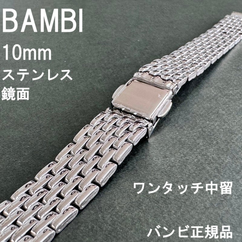 BAMBI 時計ベルト 10mm ステンレス バンド シルバー ワンタッチ中留め バンビ