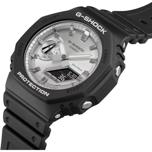 初代モデル“DW-5000C”にも採用された“八角形フォルム”を継承したGA-2100は、タフな構造をそのままに厚さ11.8mmの薄型化を果たしたデジタル・アナログコンビネーションモデルです。
