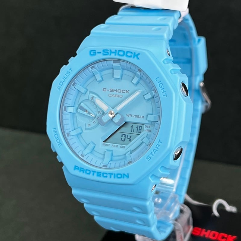ベースモデルはオクタゴンベゼルのGA-2100を採用。人気のカラーリングをケース、ベゼル、バンド、文字板の各パーツに至るまでワントーンで統一し、フェイスも奥行きのあるモデルに仕上げました。