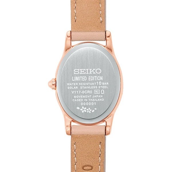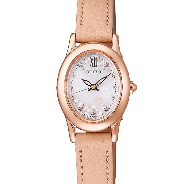 オーバル形のSWFA208には、ダイヤルの6時位置と12時位置を中心に水彩画のような柔らかなタッチの桜のモチーフを施しました。
