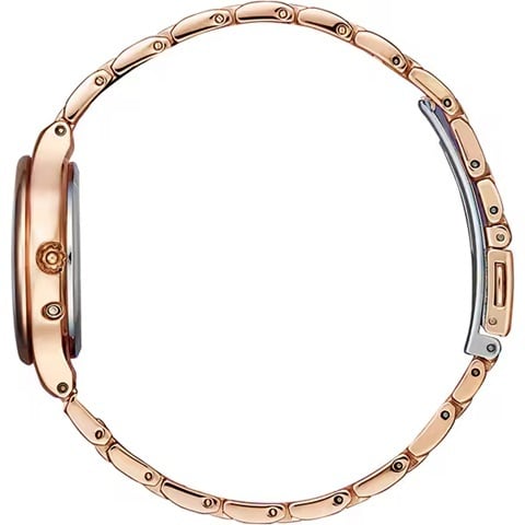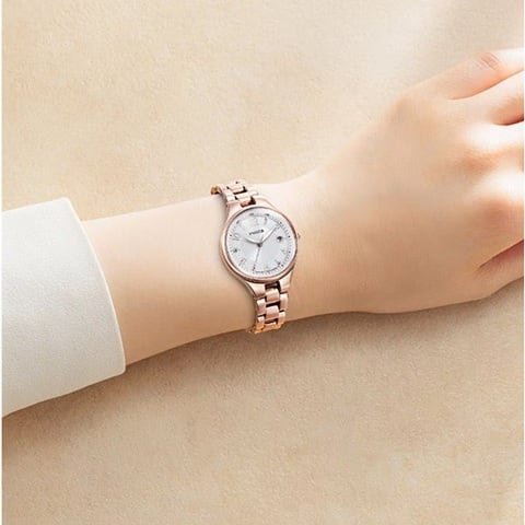 スイーツの味わいから連想される感情をテーマにしたシリーズ。爽やかな「甘さ」から連想される「シャーベット」をモチーフにしています。氷の粒のようにきらめくラメやカットパーツ、ガラスの器をイメージしたパターンを文字板の外周にあしらい、シンプルなアラビア数字と細めのフレームで抜け感と透明感を表現しました。9時位置のクリスタルガラスとカットパーツがシャーベットのような輝きを腕元から演出します。